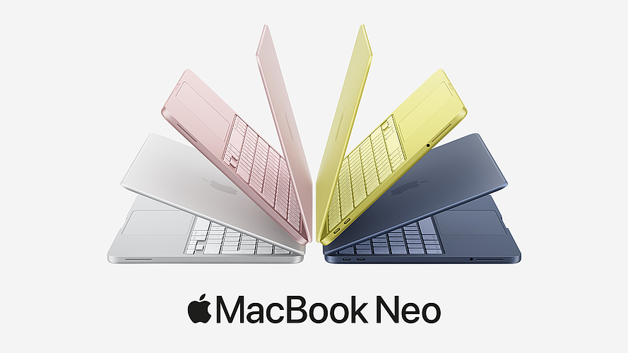 Das neue MacBook Neo erscheint in den Farben Silber, Rosa, Zitrus und Indigo. Sie können es ab sofort bei uns vorbestellen. Erhältlich ist es ab Mittwoch, 11. März 2026, zu folgenden Preisen: